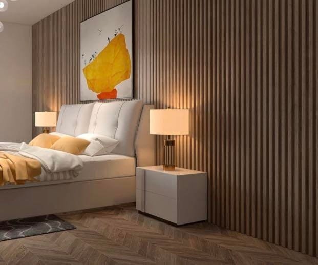 Para quienes buscan algo más exclusivo, contamos con revestimientos alistonados de PVC que aportan un valor estético superior. Además, ofrecemos paneles acústicos con una base fonoabsorbente e ignífuga, y listones de madera chapada con un elegante acabado en barniz mate (2700 x 325 x 21 mm).